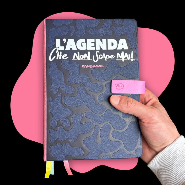 La copertina dell'agenda in pelle ecologica si chiude con una chiusura magnetica dello stesso materiale. Al suo interno troverete due pagine di sticker mood per arricchire i vostri planner. L'agenda è dotata di 3 segnalibri per ritrovare sempre il segno in ognuno dei tre tipi di pagina.
